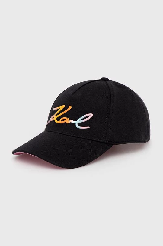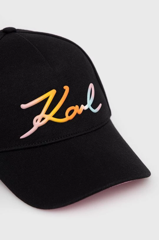 Σκούφος με γείσο baseball από τη συλλογή Karl Lagerfeld. Μοντέλο από από ύφασμα με απλικέ.
