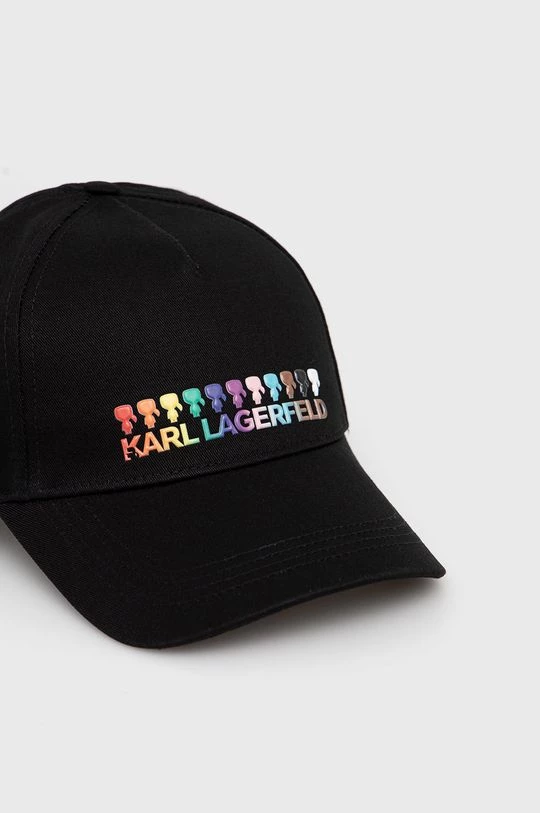 Σκούφος με γείσο baseball από τη συλλογή Karl Lagerfeld. Μοντέλο από από ύφασμα με απλικέ.