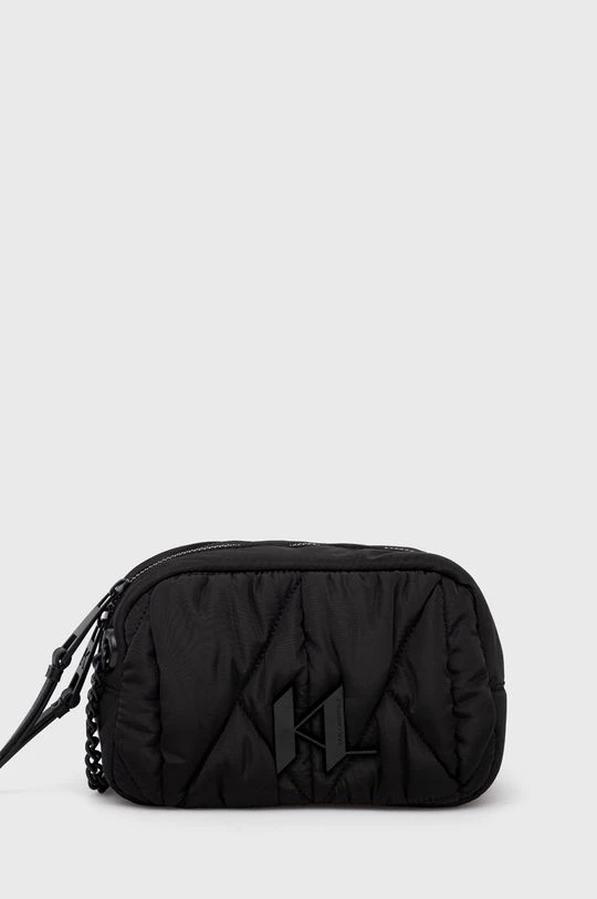 Μικρή τσάντα από τη συλλογή Karl Lagerfeld. Μοντέλο με κλείστρο από από συνδυασμό υφασμένου υφάσματος και οικολογικού δέρματος.