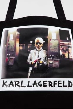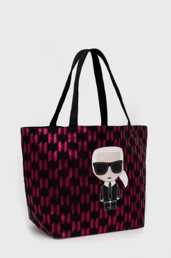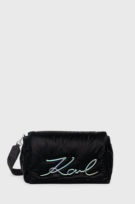 Μεσαίου μεγέθους τσάντα από τη συλλογή Karl Lagerfeld. με κλείστρο μοντέλο από από υφασμένο ύφασμα.