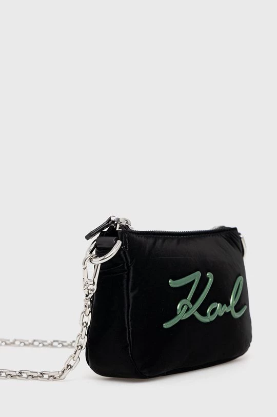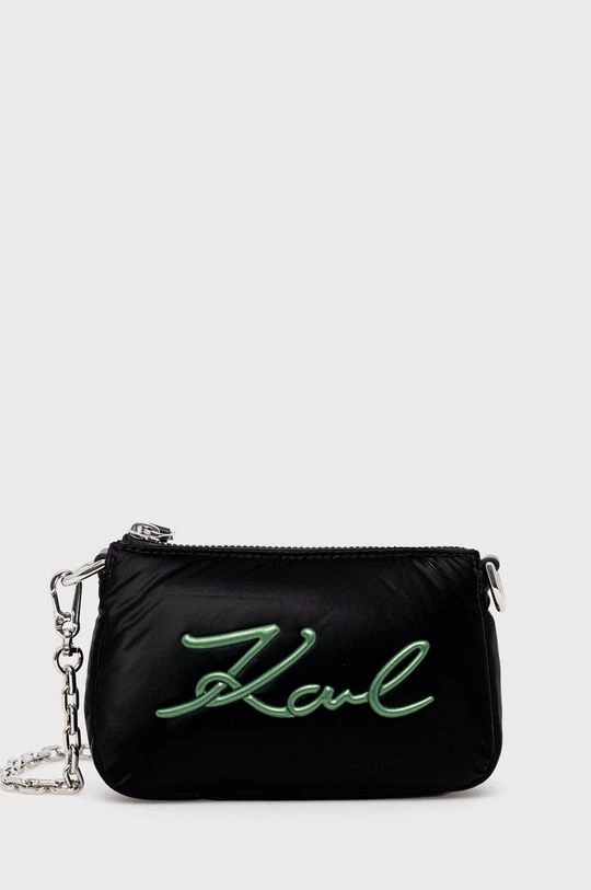 Μικρή τσάντα από τη συλλογή Karl Lagerfeld. Μοντέλο με κλείστρο από από υφασμένο ύφασμα.