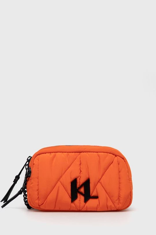 Μικρή τσάντα από τη συλλογή Karl Lagerfeld. Μοντέλο με κλείστρο από από συνδυασμό υφασμένου υφάσματος και οικολογικού δέρματος.
