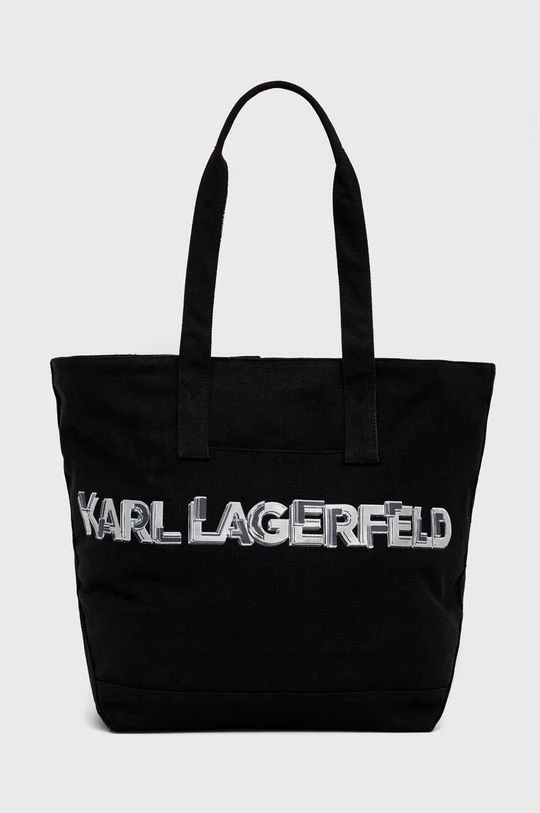 Μεγάλη τσάντα αγοραστή από τη συλλογή Karl Lagerfeld. με κλείστρο μοντέλο από από υφασμένο ύφασμα.